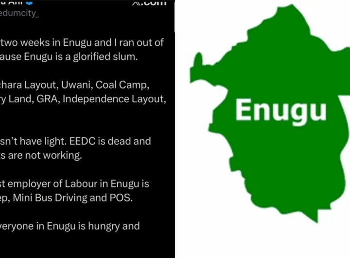 A social media user has sparked reactions online after posting a strongly worded critique of living conditions in Enugu, the capital of Enugu...